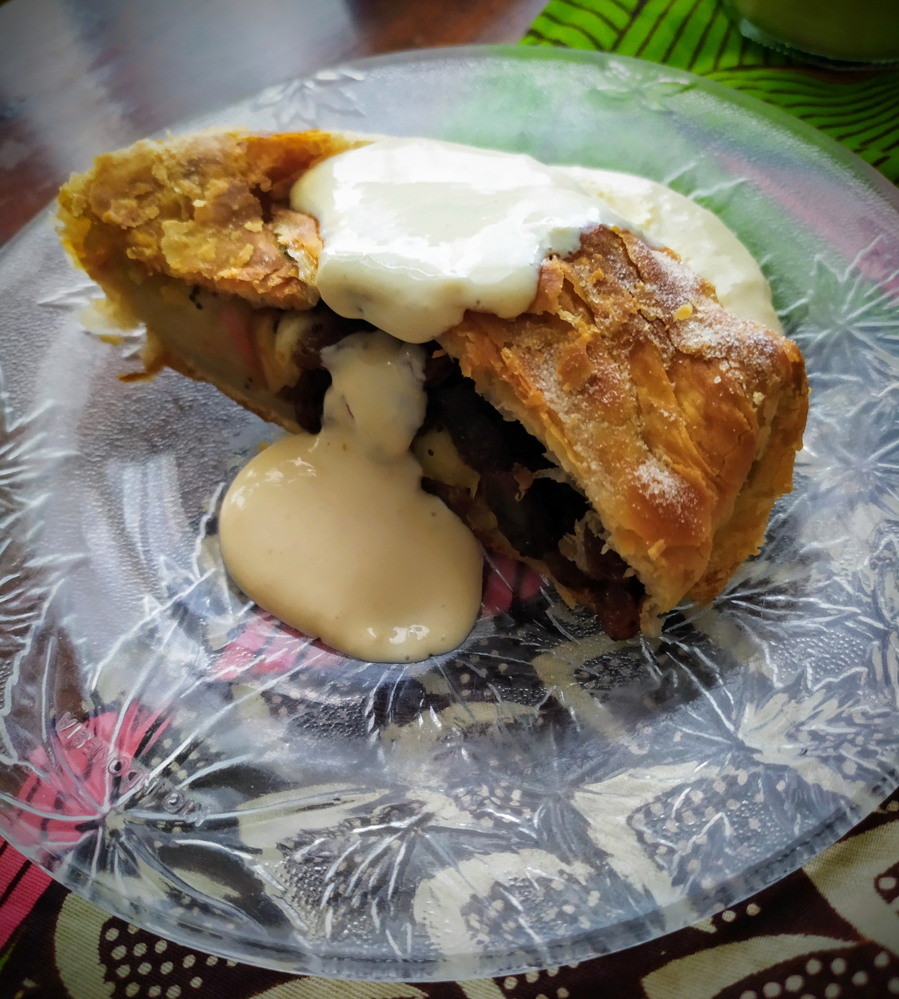 J’ai choisi d’accompagner ce strudel avec une crème des « rois ». L’ensemble est vraiment agréable et surprenant!