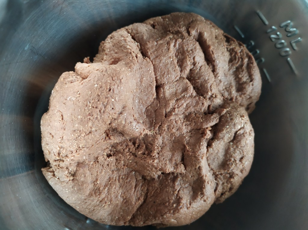 - Ajouter le lait d’avoine, crème de coco, sirop d’agave aux ingrédients et pétrir l’ensemble ( j’ai utilisé un robot pâtissier)