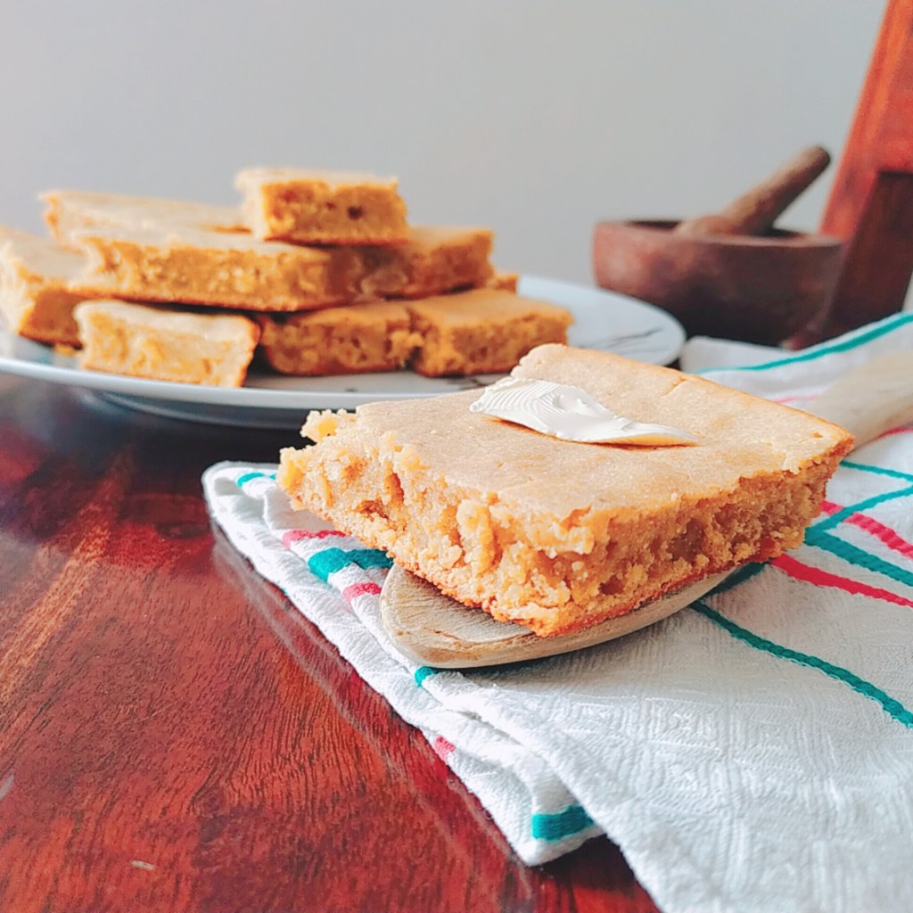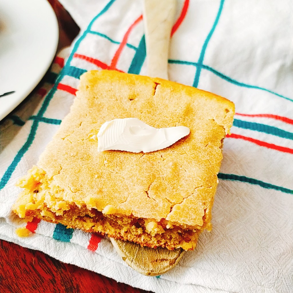 Le pain de maïs ou cornbread peut se manger avec de la margarine ou peut accompagner les plats comme la fricassée d’epinards ou de brèdes, le Chili sin carne ou encore le coleslaw.