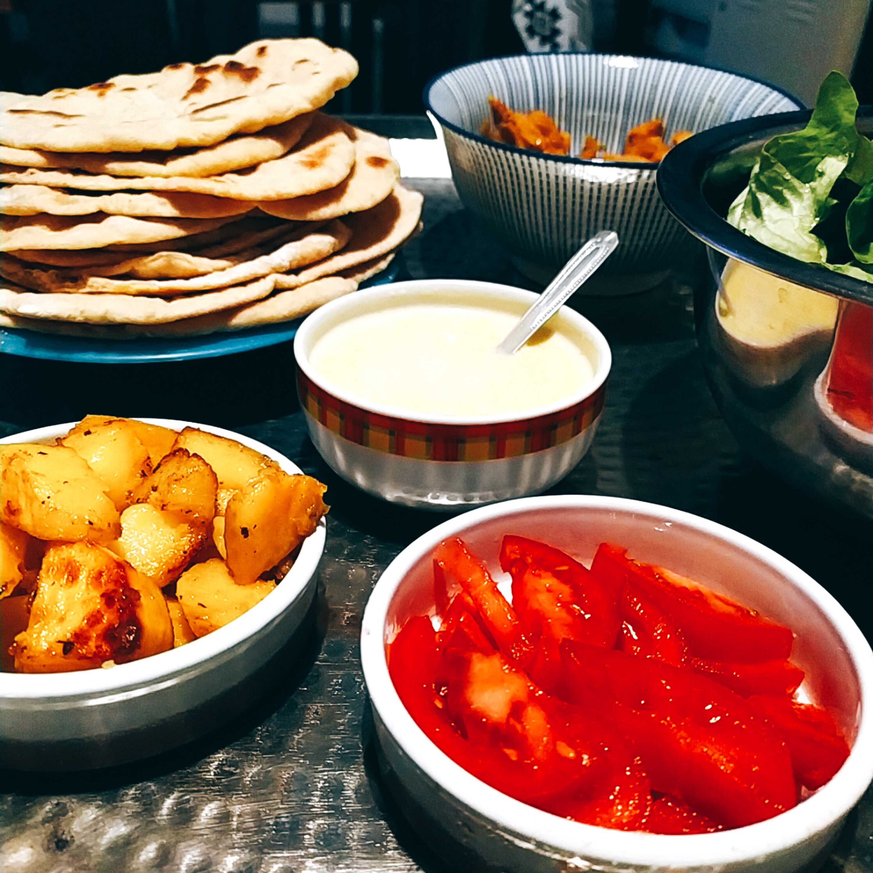 Ces pains moelleux pourront accompagner des plats variés : houmous, Shawarma vegan ou caviar d’aubergines Libanais (Baba ghanouj), batata harra (pommes de terre épicées rôties)…..