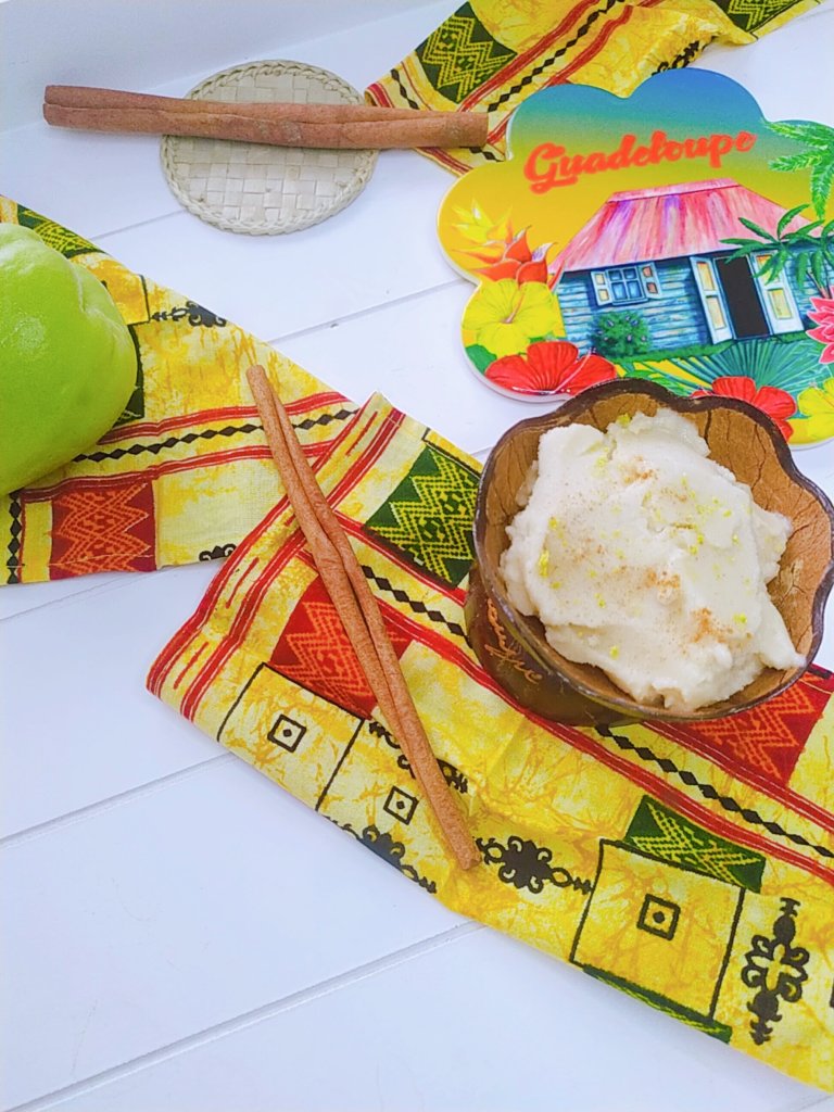 La christophine aussi appelée chayotte ou chouchou fait partie des cucurbitacées. Elle pousse sous un climat tropical et peut être blanche ou verte. Pour les personnes ayant le plaisir de pouvoir en cultiver, il faut essayer de varier les recettes car cette plante est très prolifique….. Parmi les plats habituels on trouve : en gratin, en salade (crue râpée ou cuite). J’ai déjà proposé un gaspacho l’année dernière. Voilà donc une version de sorbet coco-christophines sans sorbetière à la façon d’une nice cream.