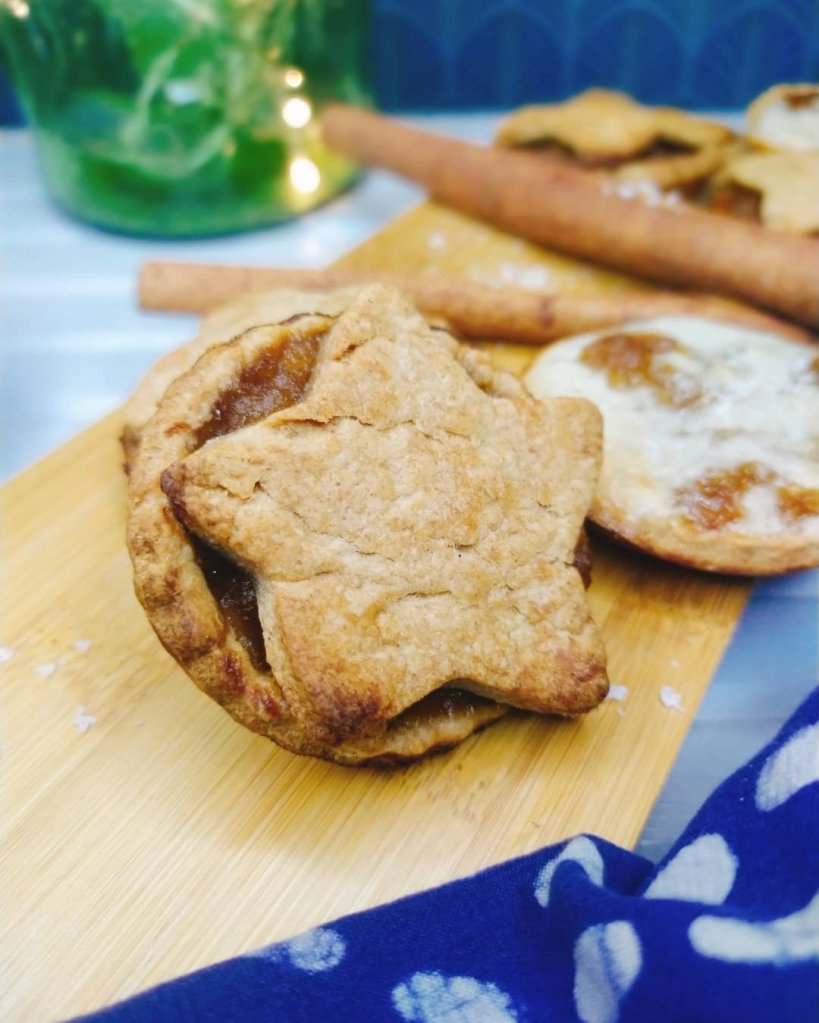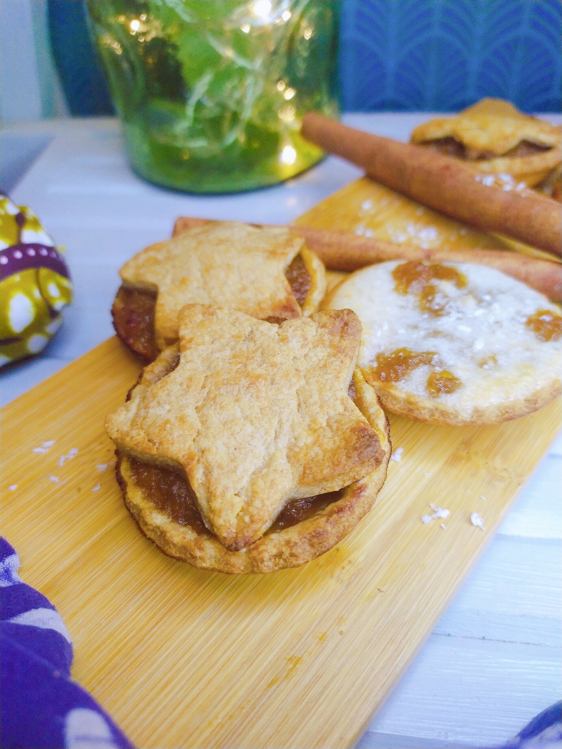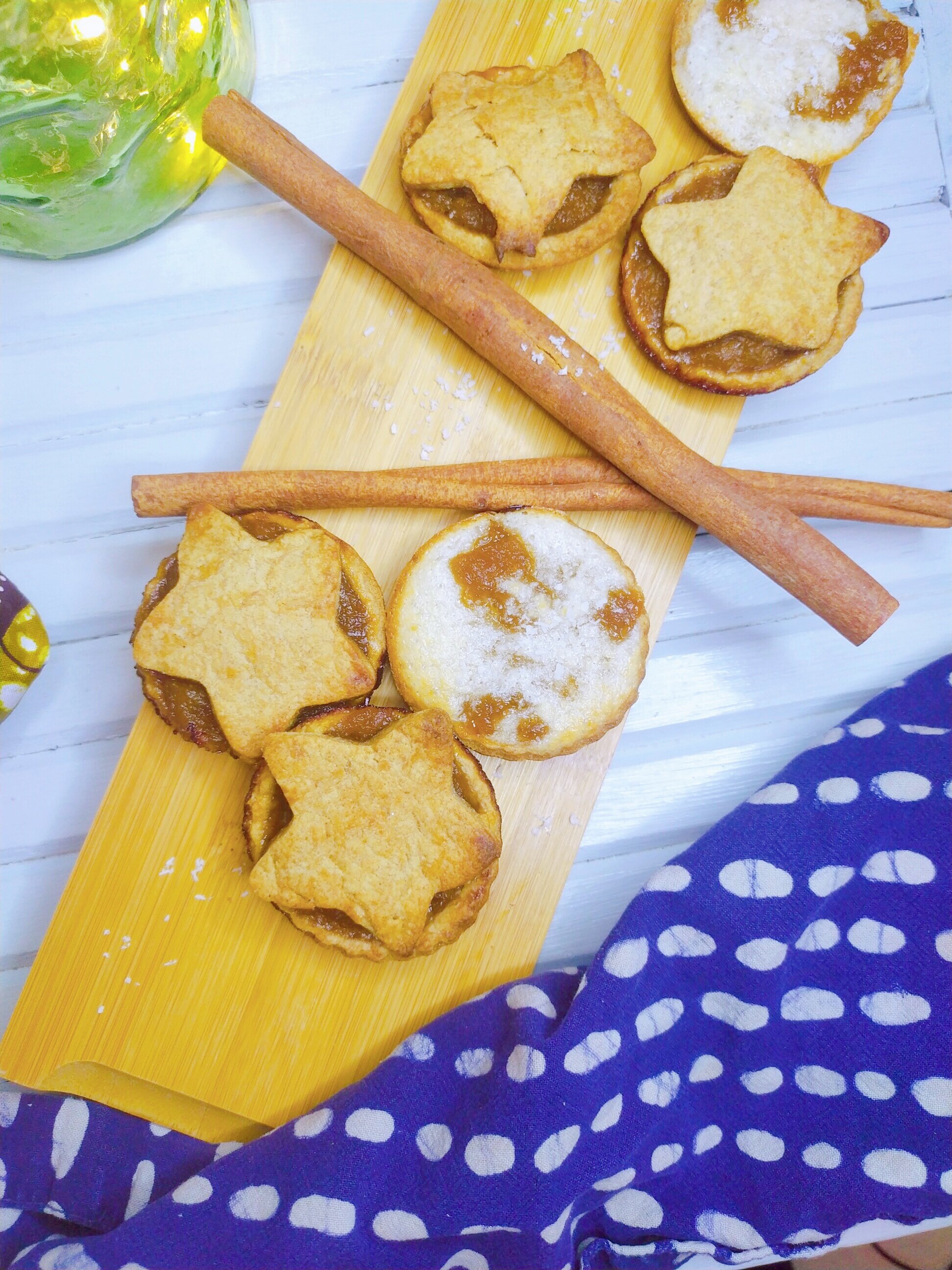 Les mince pies sont des tartelettes traditionnellement préparées durant les fêtes de fin d’année Outre-manche. La mince meat traditionnelle aux pommes et raisins secs est ici remplacée par une compotée d’ananas aux épices.